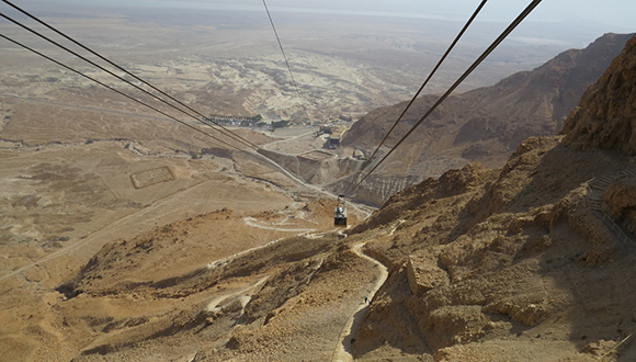 8:00 מחכים לרכבל הראשון שיעלה אותנו אל פסגת המצדה. הנוף בדרך מרהיב.