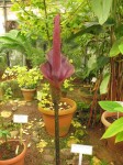 פקעת של הצמח הובאה לגן הבוטני בשנת 2002 ונשתלה בחממה הטרופית. בתחילת חודש נובמבר 2013 החל להופיע ניצן הפריחה וכעת התפרחת מתנשאת לגובה 130 ס"מ. הפרח מתאפיין בריח חזק מאד ולא נעים אשר מושך אליו בעיקר זבובים. משך הפריחה הוא קצר וצפוי להסתיים בתוך מספר ימים בודדים.